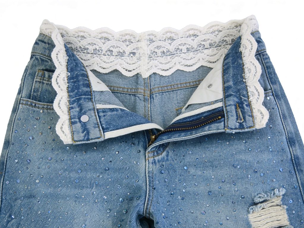 2026 Custom Lace-Waist Rhinestone Ripped Jeans for Women: Low MOQ OEM/ODM | TosinFashion China 1024 768 user