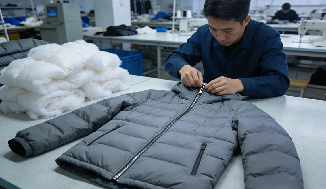 Before mass production, we hold a craftsmanship confirmation meeting with clients. We review pattern details, sewing standards, and material compatibility. We also produce a sample jacket and test it for fit, stitching quality, and detail processing. Only after the client approves the sample do we proceed to production. This step avoids misunderstandings and ensures alignment on quality expectations.