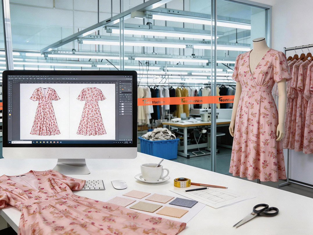 Many designers focus only on visual appeal, ignoring how pattern structure impacts production. A beautiful design may be hard to cut, sew or cause fitting issues. Our factory engineers dress patterns for production from the start.