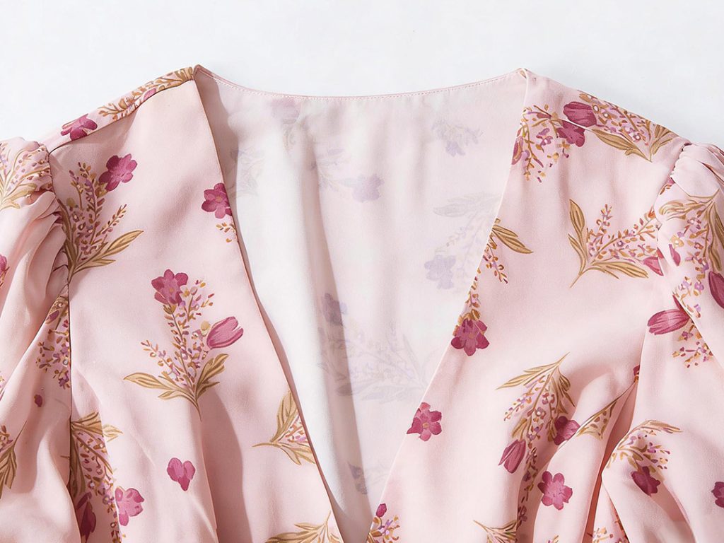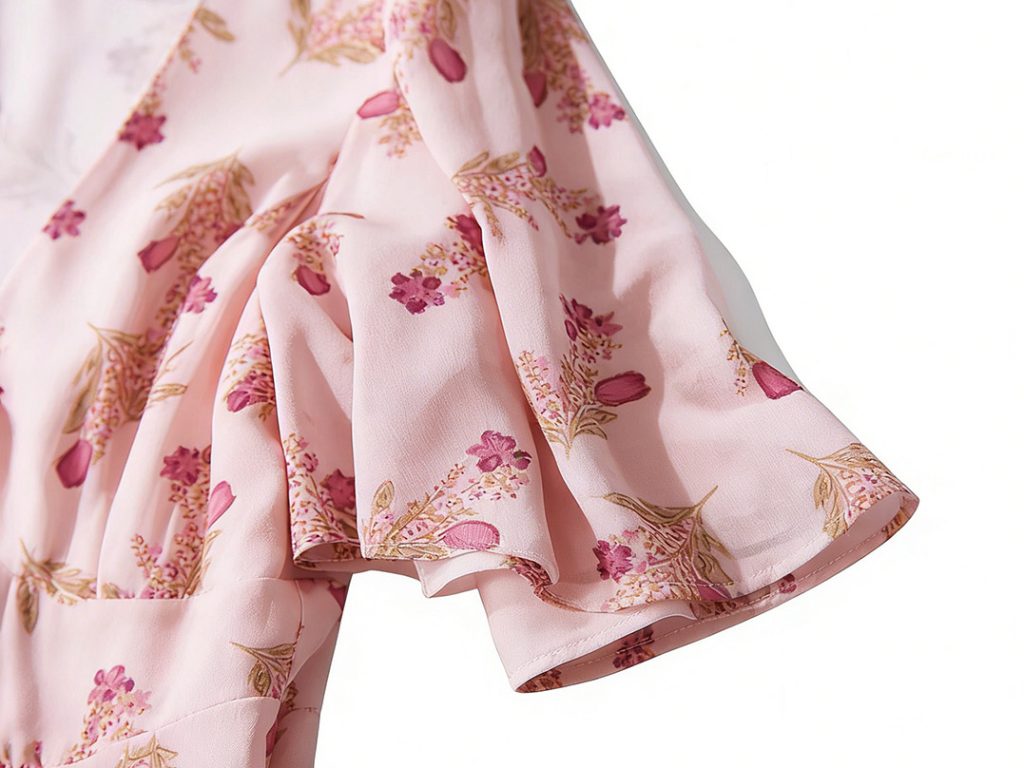 This dress uses lightweight chiffon/georgette fabric, which is breathable, drapey and skin-friendly, ideal for spring and summer dresses. The fabric has a soft, flowing texture that enhances the dress’s elegant look.