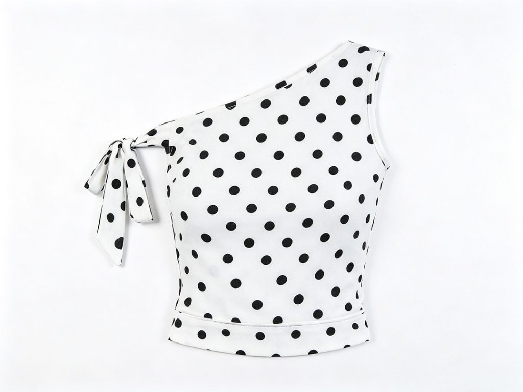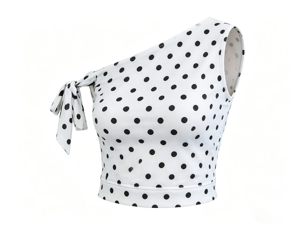 Classic black and white polka dot elements create timeless retro style. The slim cropped waist-cut design fits body curves naturally, and it matches various high-waisted pants, skirts and denim bottoms perfectly.
