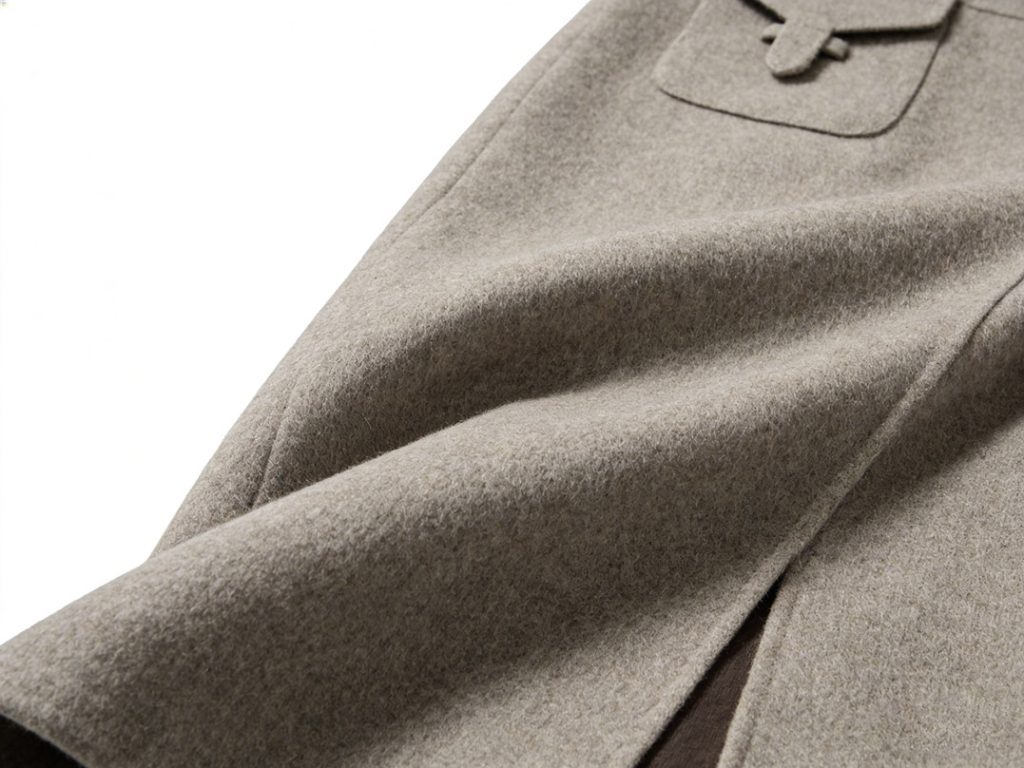 This skirt uses high-quality wool/cashmere blend double-faced fabric, also known as alpaca woolen material. The fabric features a fine fluffy texture, clear weave, soft and fluffy hand feel, excellent warmth retention, and a structured shape that resists wrinkles—making it a top-tier fabric for high-end autumn and winter women’s wear.