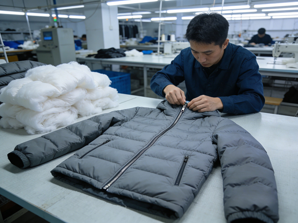 For pattern design, focus on a slim fit to avoid a bulky look. Choose stand-up collars or small lapels to enhance elegance. Customization details include lightweight, high-loft cotton filling for warmth without weight, hidden zippers for a clean silhouette, and reflective brand logos on the cuffs for subtle brand exposure.